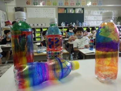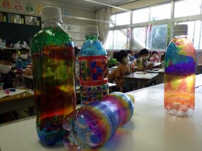 ペットボトルにマジックで色を塗ります。