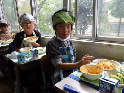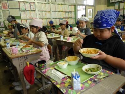 しっかり給食を食べて、午後もがんばります。