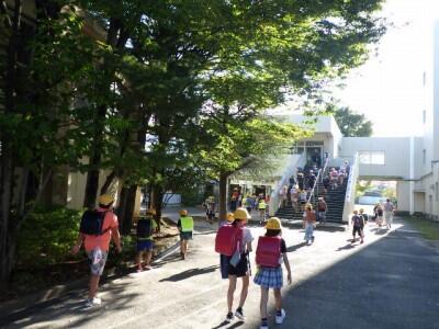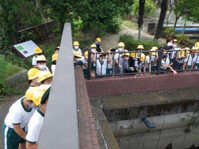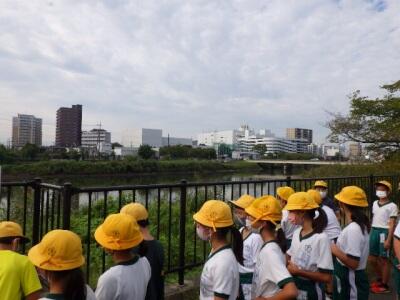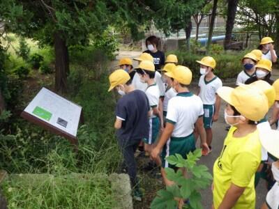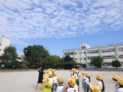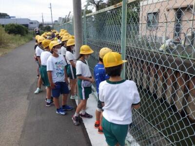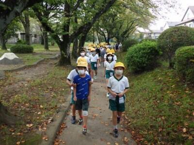 秋空の下、学校周辺のフィールドワークに出かけます。