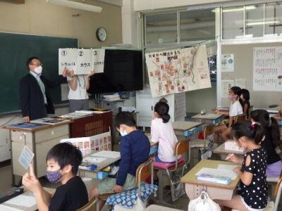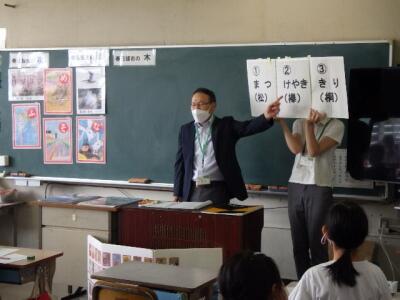 春日部市教育委員会社会教育課の先生をお招きし、かすかべ郷土かるたを通しての地域学習を行いました。