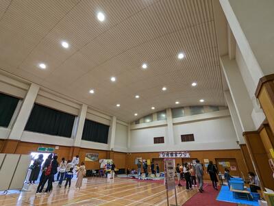 太陽高度が下がり、朝日が差し込むのは体育館の一部のみとなりました。