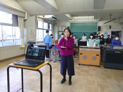 お囃子教室。太鼓の音が音楽室に響いていました。