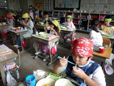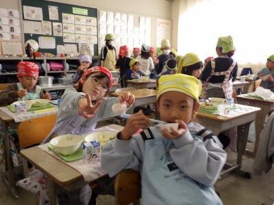 今日の「ご飯」は、幸松小の近くの白石さんの田んぼでとれたお米です。