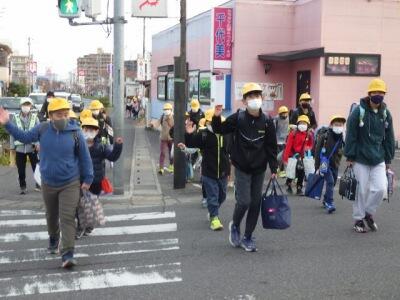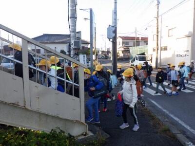 音楽会が終わり、古利根川を渡って学校へ帰ります。