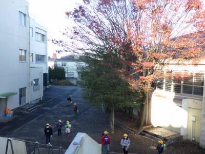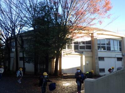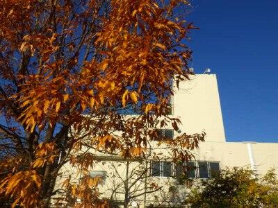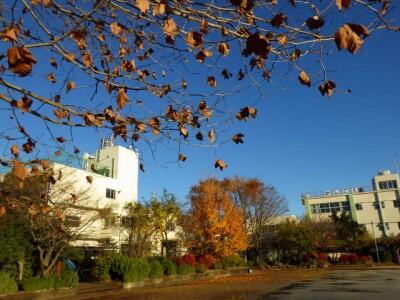 体育館前の木々の葉が少なくなりました。