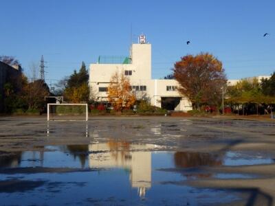 朝日が校庭を照らします。