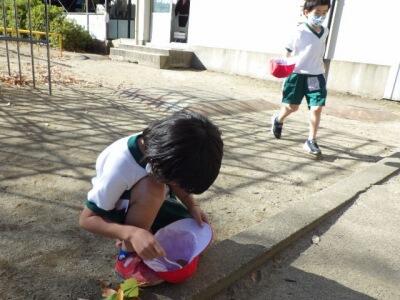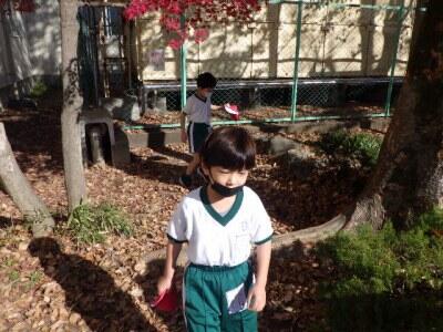お面作りで使う落ち葉を探しにきました。