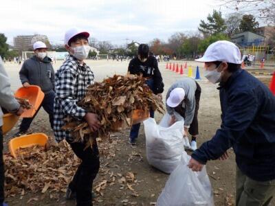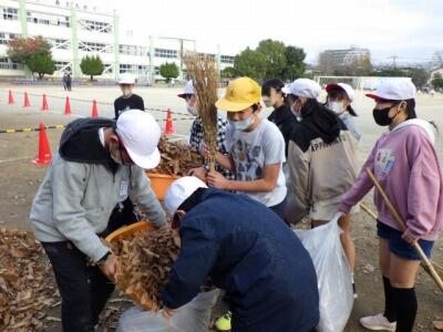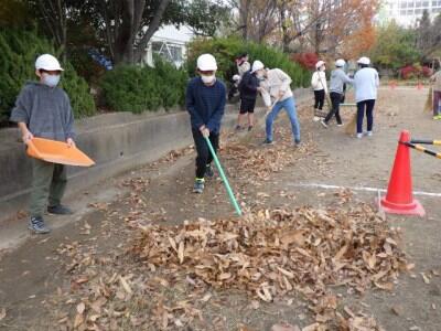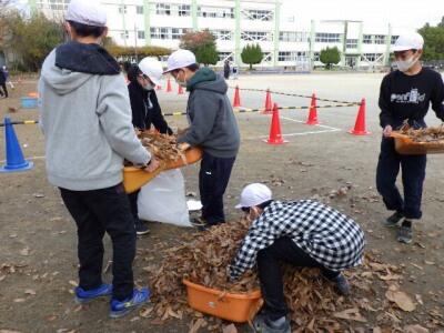 さすが6年生。たくさんの落ち葉を持ち上げることができます。