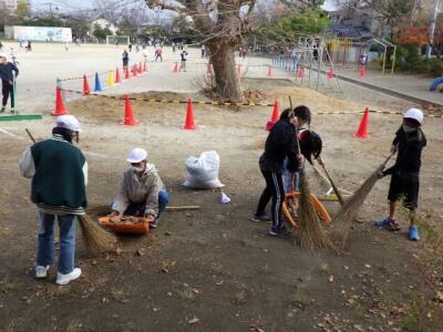 明日の持久走大会に向けて、6年生が落ち葉はきをしてくれました。