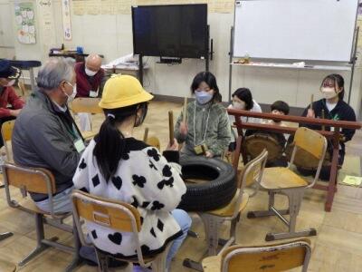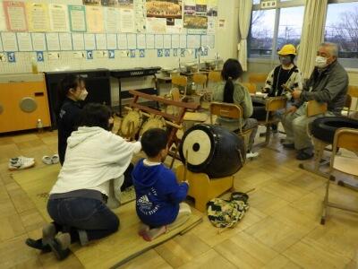 お囃子教室。太鼓の音が音楽室に響いていました。