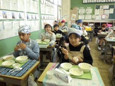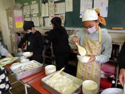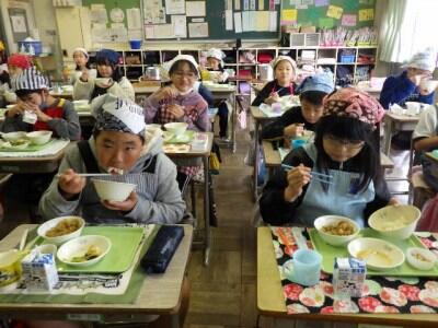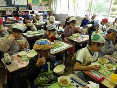 今日の「ご飯」は、幸松小の近くの白石さんの田んぼでとれたお米です。