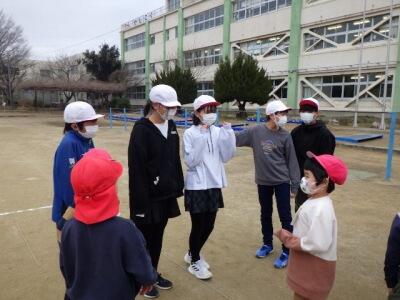 同じグループの1年生とあいさつをします。