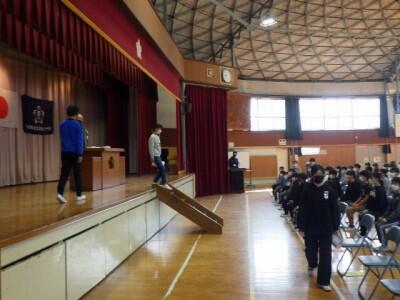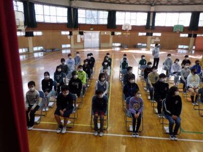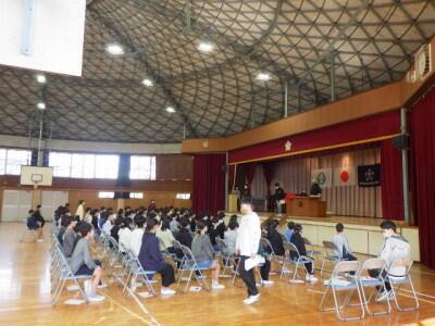 約3年ぶりに、体育館で修了式を行いました。