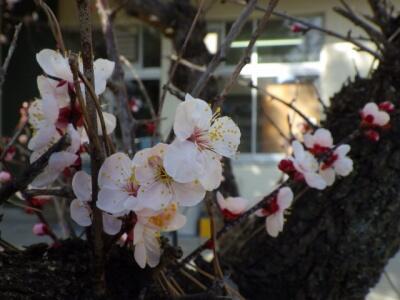 ◆本日の午後2時の観測で、本校の標本木(職員室前)が5輪以上の花が開いていることを確認。