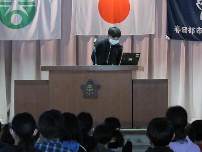 6年生はすでに卒業しているので、1~5年生の児童が一堂に会しました。