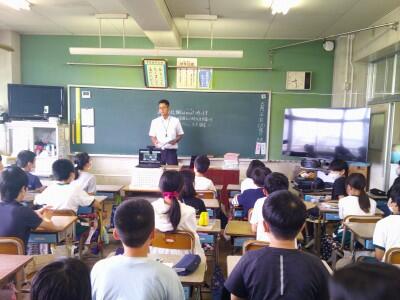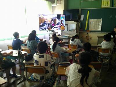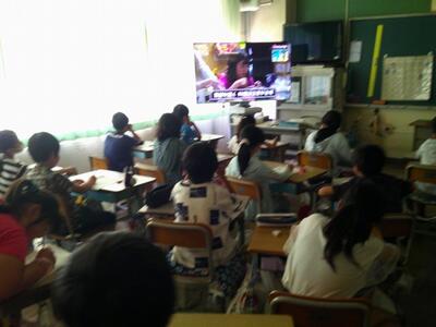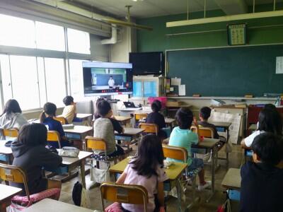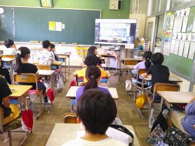今日の全校朝会は5年1組の教室からリモートで行いました。