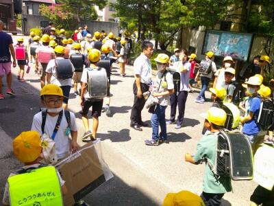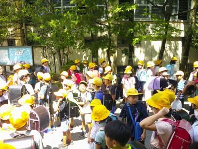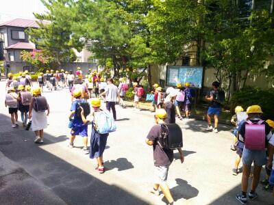 校庭ではなく、各教室に班ごとで集まって下校します。