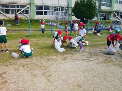 子どもたちも「〇つとったよ。」と言いながら、草を抜いていました。