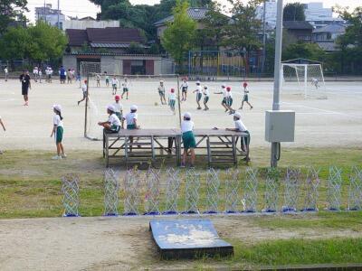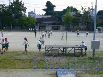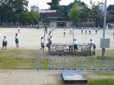 校庭ではボールゲームクラブがサッカーをやっていました。