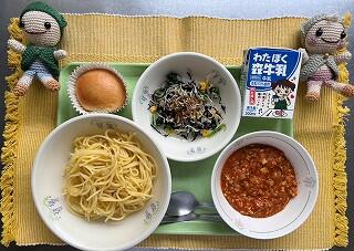 パンは幸松小オリジナルの「こうちゃんほっぺ」です。中にはカスタードクリームが入っています。