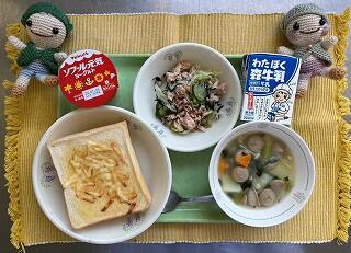 6月4日から10日は、歯と口の健康週間です。歯と口を健康に保つ第一歩は、よく噛んで食べることです。今日の給食では、噛みごたえのあるメニューを取り入れました。