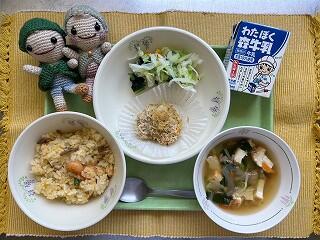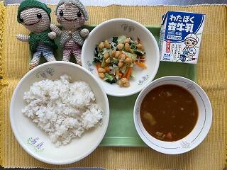 6月4日から10日は、歯と口の健康週間です。歯と口を健康に保つ第一歩は、よく噛んで食べることです。今日の給食では、噛みごたえのあるメニューを取り入れました。