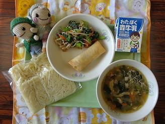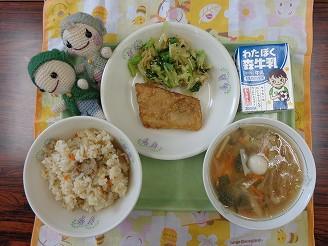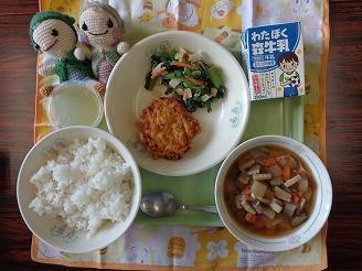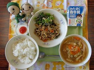 2学期の家庭科の授業で、バランスのよい献立について学習し、給食の献立を考えました。たくさんの食べ物を取り入れたタイトル通り栄養たっぷりの献立を考えてくれました。ツナと豆腐のから揚げは、ふわっとしていて食べやすかったです。