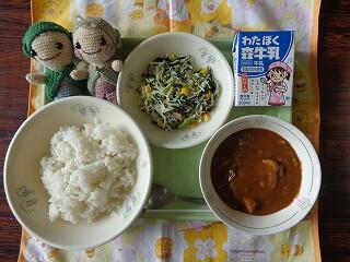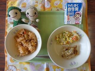 6年生が考えた献立です。旬の野菜ほうれん草が入ったグラタンにうずら卵が宝物のように入っています。いろどりよいの献立です。