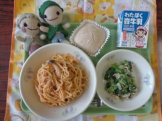 6年生が考えた料理です。魚をみんなが好きなスパゲッティに入れることで食べやすく工夫されています。