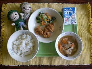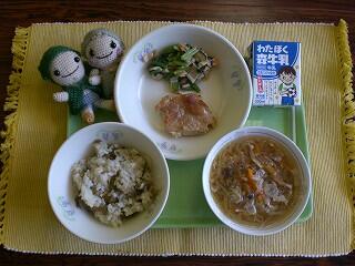 6月4日から6月10日は、「歯と口の健康週間」です。歯と口を健康に保つ第一歩は、よく噛んで食べることです。そこで今日は、よく噛む必要のある献立にしました。