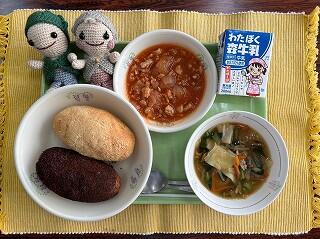 今日の給食の二色揚げパンとワンタンスープは、11月に実施したリクエスト給食において、それぞれ第1位・第5位にランクインしたメニューです。ワンタンスープは、煮干しでしっかりと出汁をとっているため、旨味が感じられます。今日もたくさんの児童がおかわりをしていました。