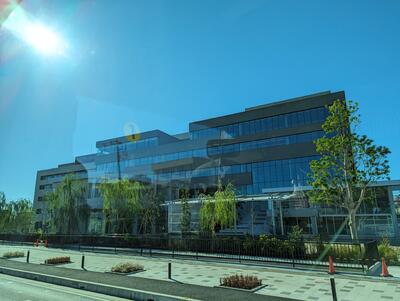 もうすぐオープンする市役所の新庁舎前を通過中。