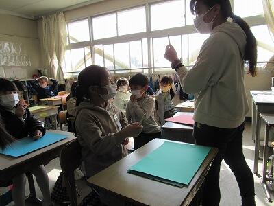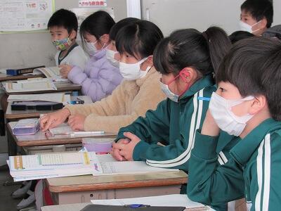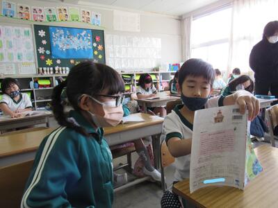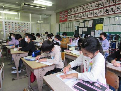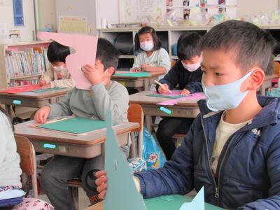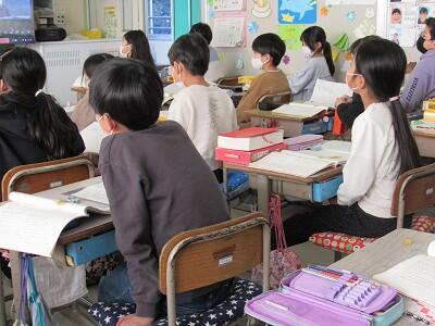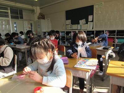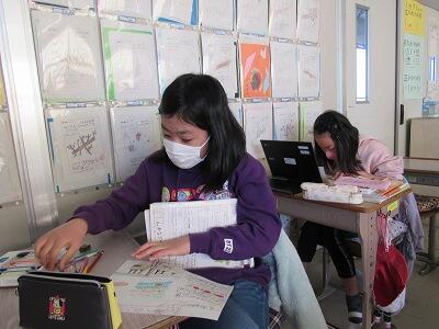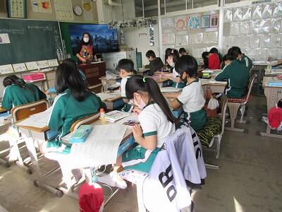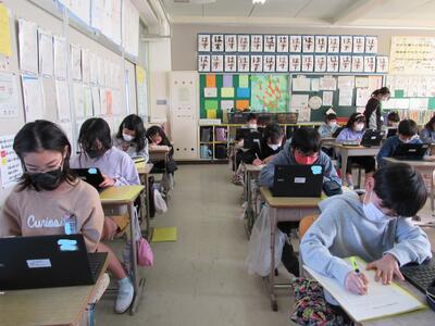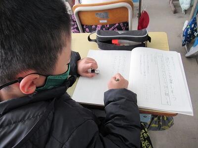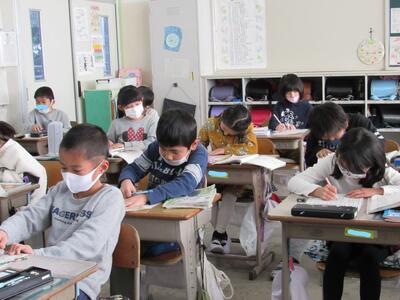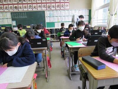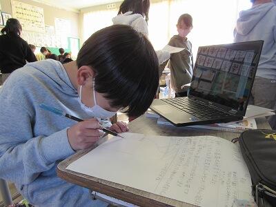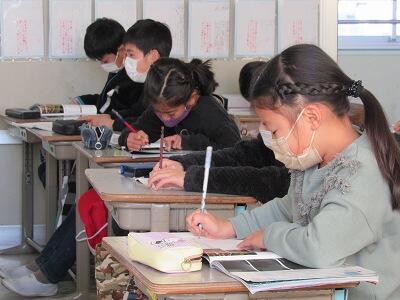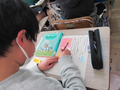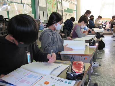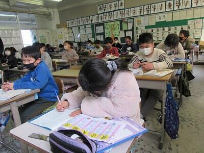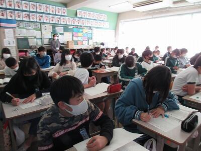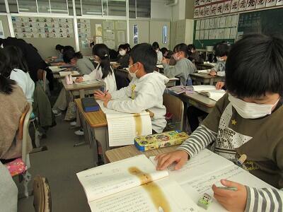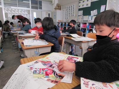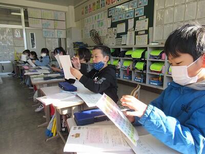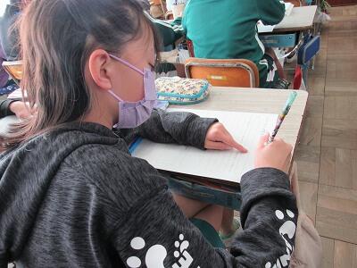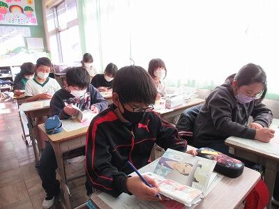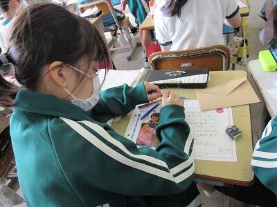 ◆5年生は、日ごろお世話になっている方々に気持ちを伝えようと手紙を書いているよ。