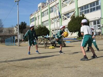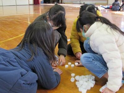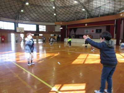 ◆幸松ドームでは、1年生が冬の遊び(羽子板)を楽しんでいるよ。