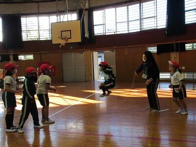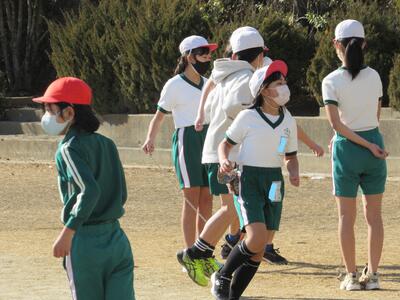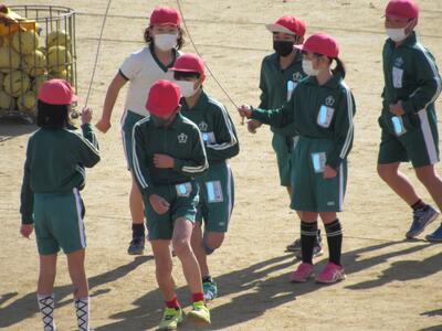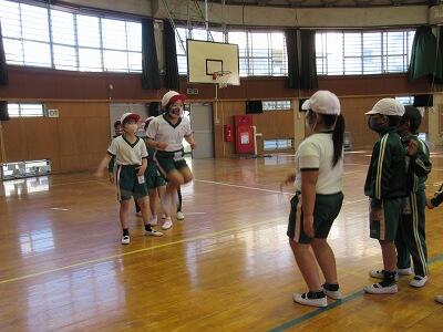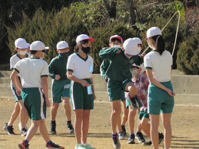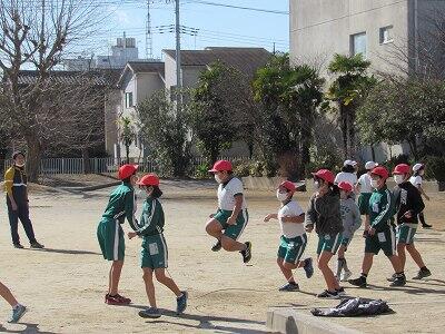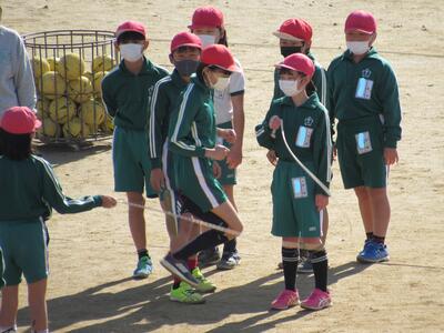 ◆校庭では、5年生が「八の字跳び」をぴょんぴょんと。