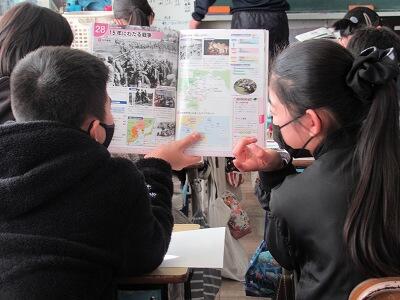 ◆6年生の社会は、「長く続いた戦争」について調べて、自分の考えをまとめているよ。