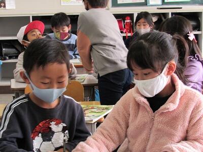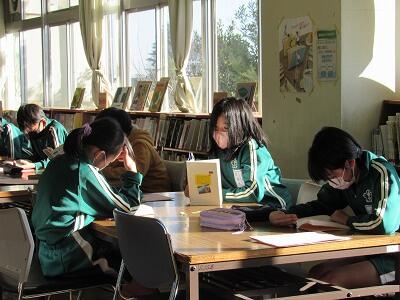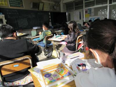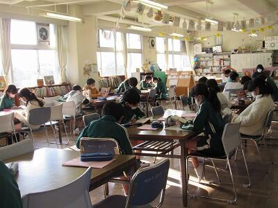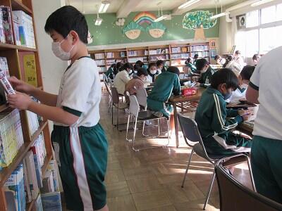 ◆図書室では、5年生が「読書の冬」を満喫しているよ。どの季節でも読書好きだね。