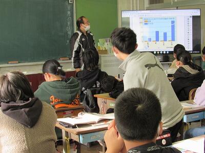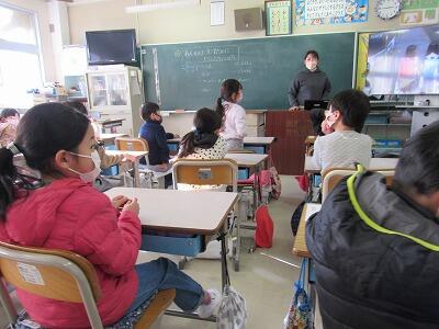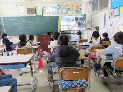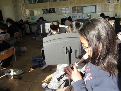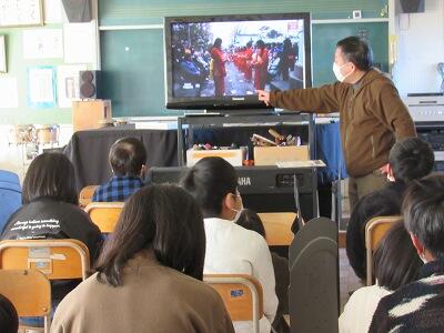 ◆4年生の音楽は、無形文化財である伝統的な楽曲をDVDで鑑賞しているよ。