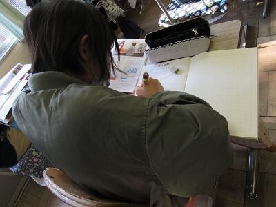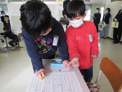 こちらは、書き終わった目標を先生と一緒に言葉を整えているよ。
