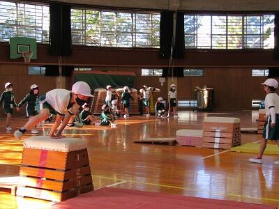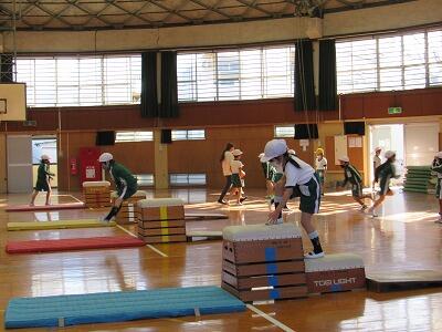 ◆幸松ドームでは、元気な2年生が体操選手に早変わり!!