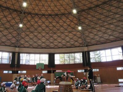 ◆音楽室からは、3年生の威勢のよい和太鼓の音色が響いてきているよ。