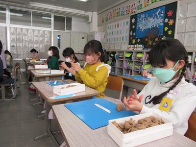 ◆2年生の音楽は、童謡「なべなべそこぬけ」を体で表現しながら楽しく学んでいるよ。
