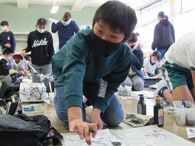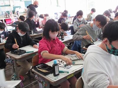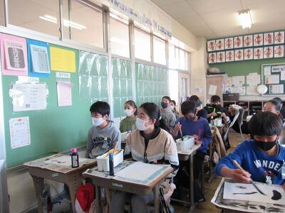 ◆6年生は、雪舟(せっしゅう)になったつもりで、図工で墨絵にチャレンジだよ。