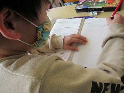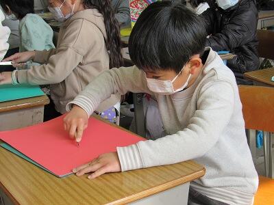 こちらは、3学期の目標をカードに清書しているよ。丁寧な字でOK!!
