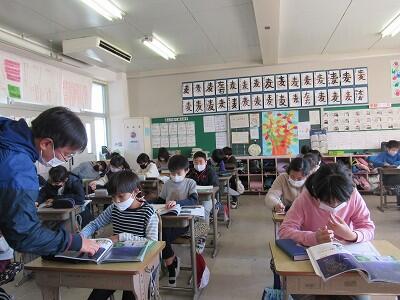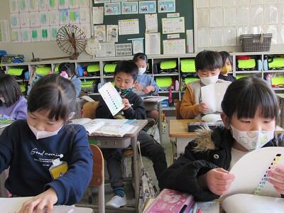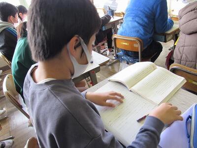 ◆3年生は、漢字の音読みと訓読みに気をつけて文章を読んでいるよ。