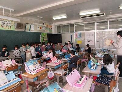 後半は、鍵盤ハーモニカでこれまでに学んだ曲を練習しているね。