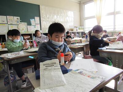◆こちらの3年生は、大凧や公園橋について調べ、新聞に表現を始めたよ。
