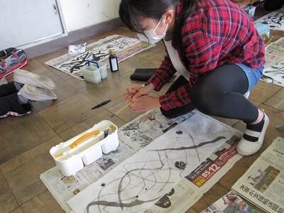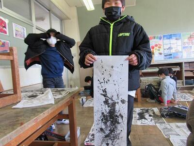 ◆6年生は、書きぞめかと思いきや、墨絵のような表現に挑戦中!!