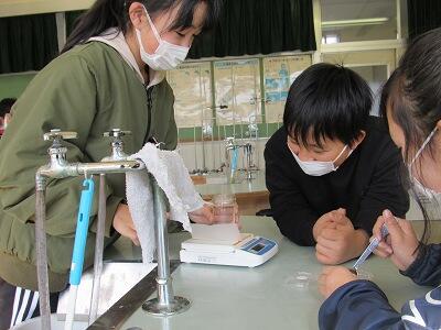 ◆5年生は、水に食塩とミョウバンを溶かし、全体の重さがどうなるか実験中!!