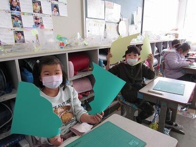 ◆元気な2年生は、図工で「窓のあるたてもの」づくりだよ。